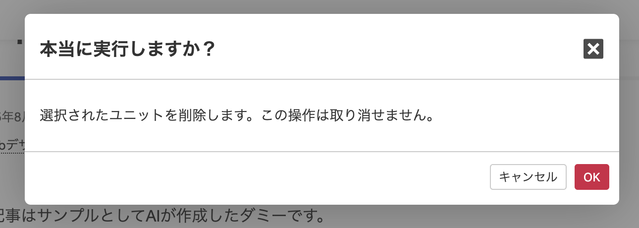 [削除]をクリックすると、確認ダイアログが表示されます。[OK]をクリックするとユニットが削除されます。