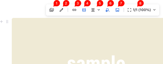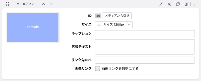 編集画面の画像ブロックを選択した状態では、画像の上に画像メニューが表示されます。