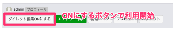 エントリー詳細画面の管理ボックスで[ダイレクト編集ONにする]ボタンをクリックするとダイレクト編集が始まります。