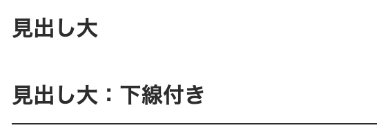 テーマによって様々な見出しが用意されています。Siteテーマ初期状態の場合は「見出し大」「見出し中」「見出し小」「見出し大:下線付き」「見出し中:下線付き」「見出し小:下線付き」の6種類です。