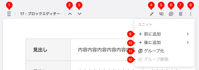 ブロックエディターユニットでコンテンツを入力・編集する