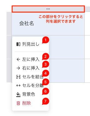 テキストメニュー(番号は上図中の番号に対応)