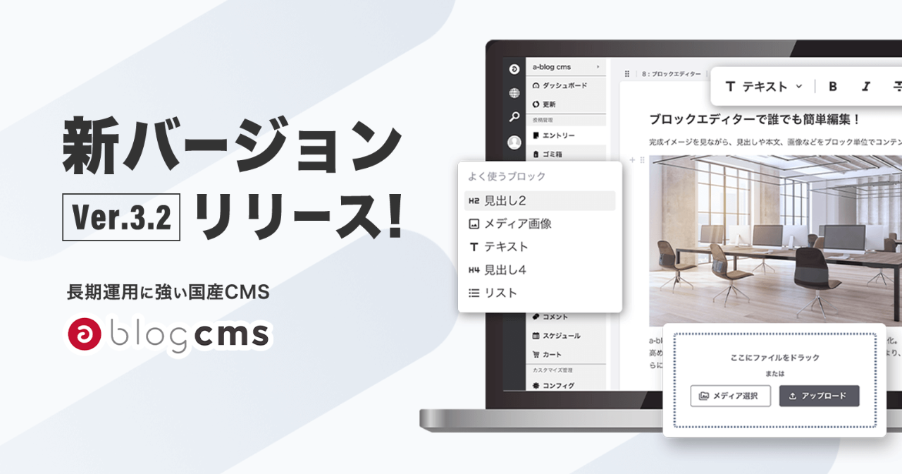 この度、a-blog cms の特長、機能などの主な情報がまとまった「a-blog cms 製品紹介パンフレット」を、最新の Ver. 3.2 に合わせて更新しました。