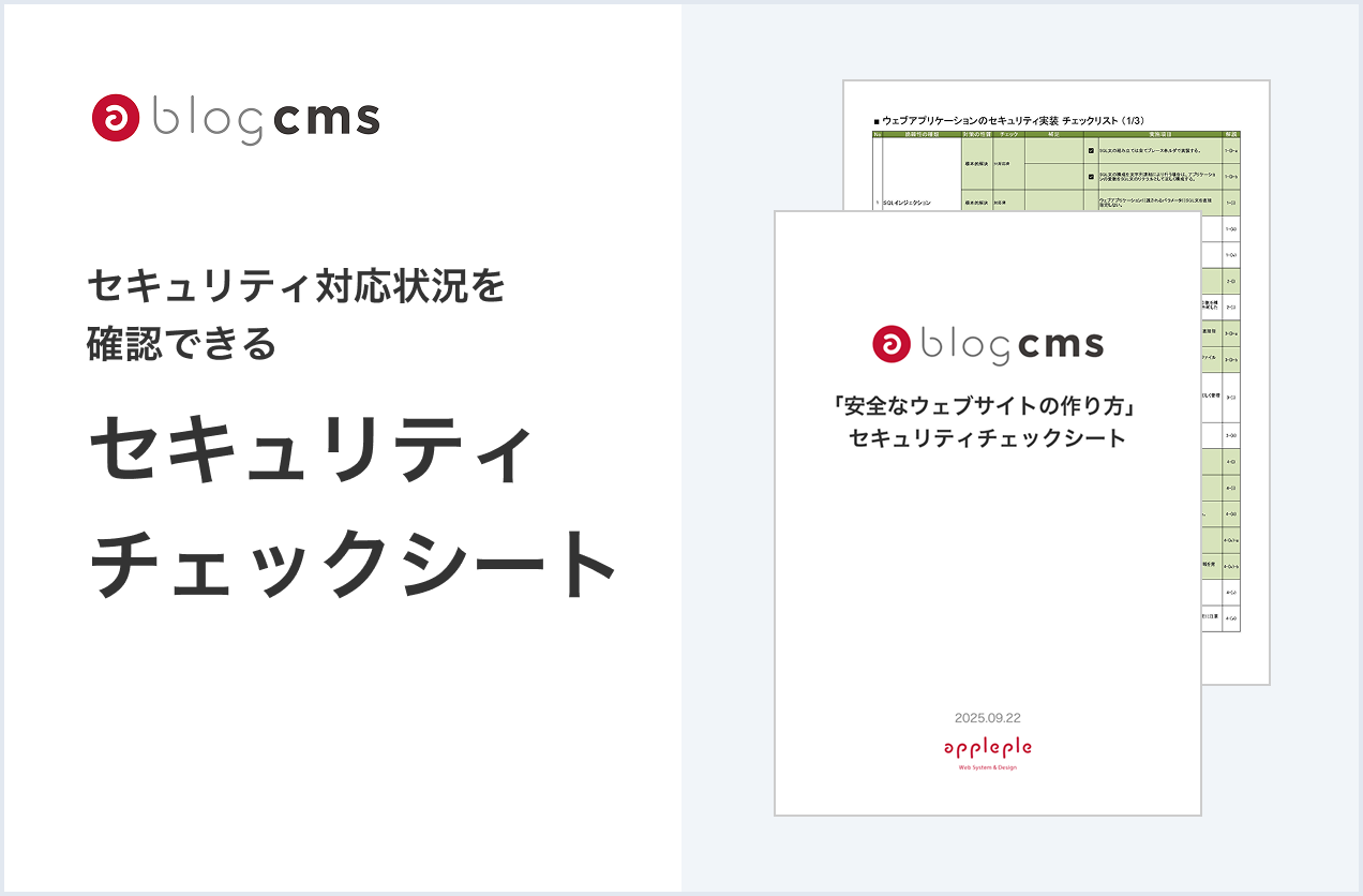 この度、IPA(情報処理推進機構)の「安全なウェブサイトの作り方」改訂第7版に基づいた「a-blog cms セキュリティチェックシート」を、最新の Ver. 3.2 に合わせて更新しました。
