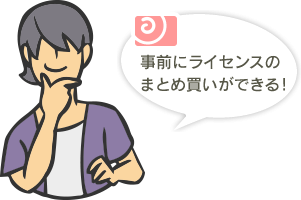 ライセンスコードとは、ライセンスを事前に購入できるシステムです。制作を始める前にライセンスコードを購入しておくことで、いざ制作となった時に入金処理などをしないでスムーズに事務処理がすすめられます。