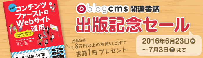 a-blog cms 関連書籍「実践! コンテンツファーストのWebサイト運用」が7月2日(土)に発売されます。関連書籍の発売と、 a-blog cms の7周年を記念し、日頃の感謝の気持ちを込めてスタンダードライセンスとオプションがセットになったお値打ちなライセンスコードを特別価格でご提供いたします。