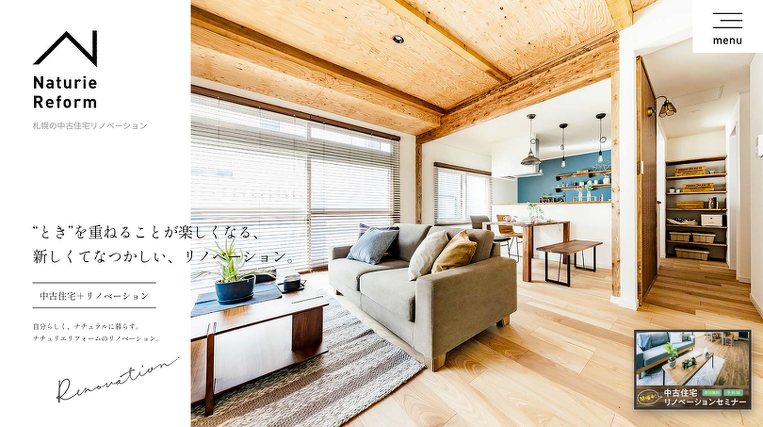 概要 ナチュリエリフォームは札幌を中心とした、木のぬくもりや素材の風合いとともに家族とともに育てていく中古住宅+リノベーションの家をお届けしています。リノベーションのポイントであ...