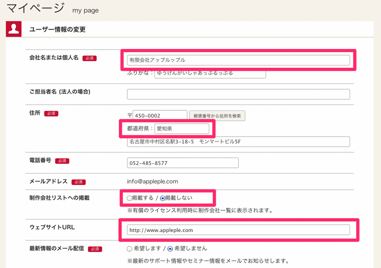 制作会社名、都道府県、掲載の有無、ウェブサイトのURLを利用しています。