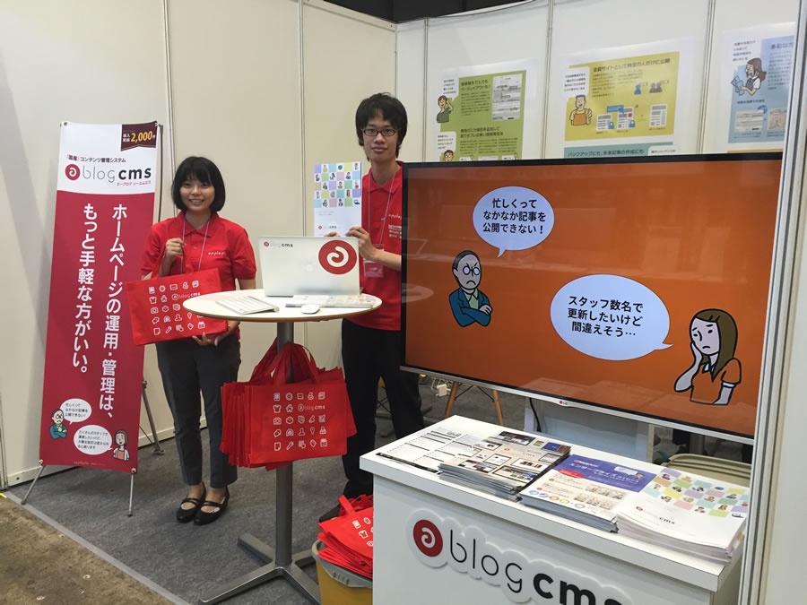 当日は開発スタッフと、個別にじっくりと相談することができます。パンフレット、ステッカー2種類を配布する予定ですので、すでに a-blog cms を導入済みの方も、ぜひお立ち寄りください。