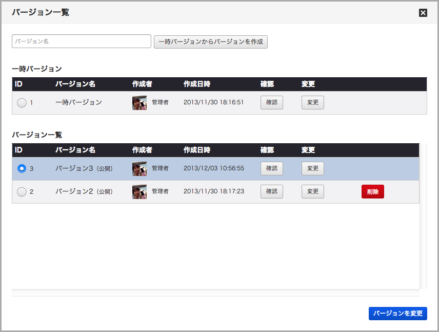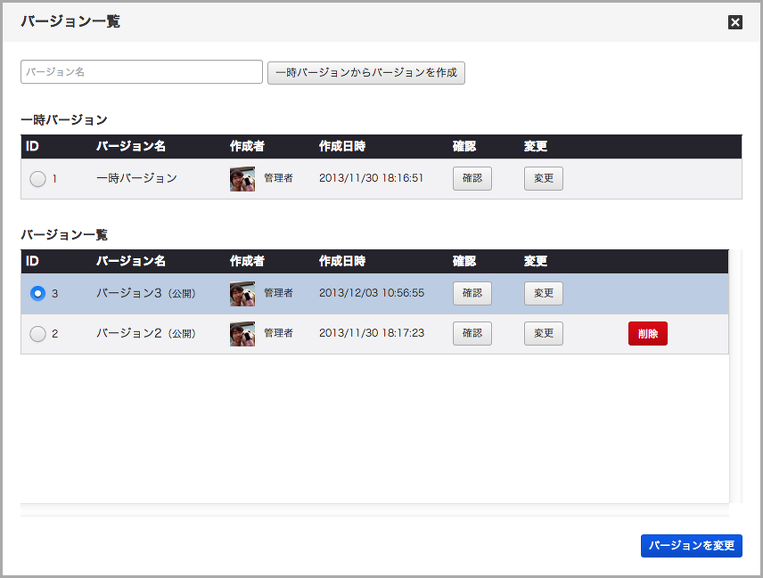 エントリーのバージョン管理機能が追加されました。1つのエントリーに未来のバージョンを含め複数のバージョンを作れるようになりました。