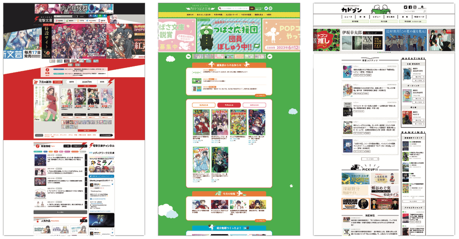 弊社では毎月 500点以上の書籍が刊行されており、新刊情報やイベント告知などのプロモーションを a-blog cms を使用した Webサイトで行なっています。「電撃文庫」「角川つばさ文庫」「カドブン」など、1,000サイト以上ものWebサイトを運用しています。
