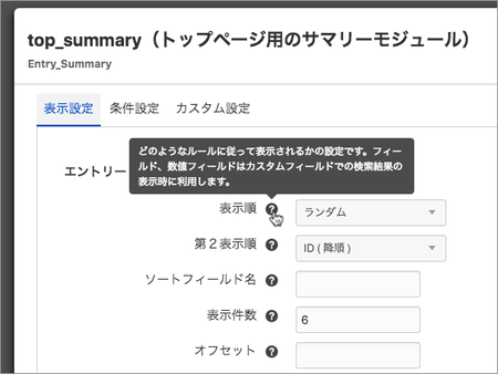 「表示設定」にも「条件設定」にもたくさんの設定項目がありますが、「?」アイコンにマウスオーバーするとツールチップが表示されるので、参考にしましょう。
