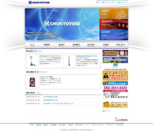 パチンコAT設備及び周辺機器・パチスロ遊技機開発・製造・販売をされている、株式会社中京遊技様のWebサイトです。 CMSにて製品情報やオリジナル遊技機・施工店の情報配信をするとともに、清潔感・信頼感を感じられるデザインにより、企業としてのイメージ向上に配慮し制作いたしました。