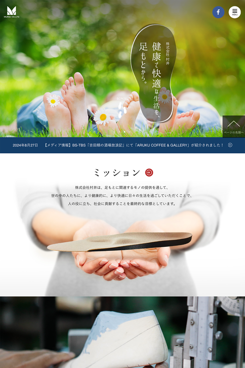 昭和6年に創業した歴史のある総合靴関連製品メーカー、株式会社村井。コーポレートサイトとして、事業内容や強み、これまでの歩みについて理解を深められるウェブサイトです。採用活動も積極的で、採用応募数の向上も目的としています。更新頻度の高いコンテンツである「メディア掲載情報」や「新製品情報」にa-blog cmsを導入。さらに、意欲的に出展・参加される「イベント」のレポートも充実させています。