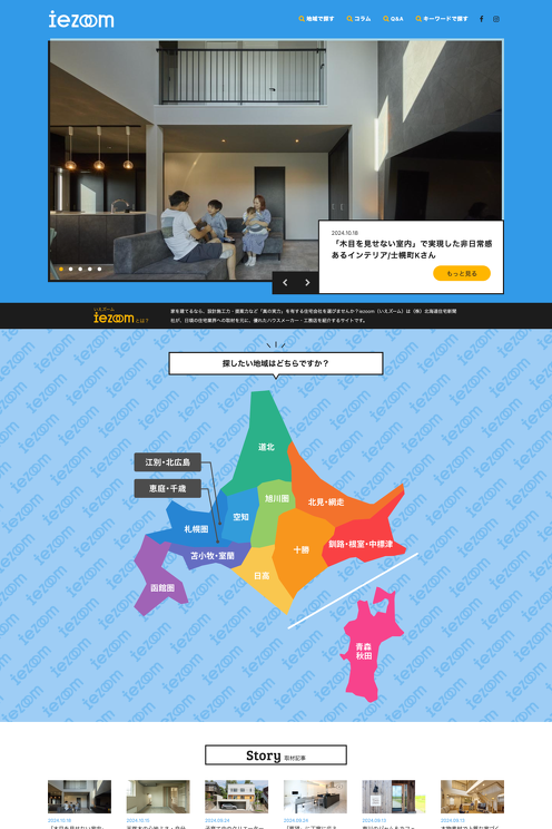 iezoom(いえズーム) https://iezoom.jp/ クライアント名 株式会社北海道住宅新聞社 制作 ウェビングスタジオ 制作メンバー コーディング・CMS:口田 聖子(ウェビングスタジオ) デザイン:川原田 このみ(川原田このみデザイン事務所) 北海道の住宅業界専門誌「北海道住宅新聞社」が、日頃の住宅業界への取材を元に、優れたハウスメーカー・工務店を紹介するサイトです。地域性に重点を置き、工務店、取材記事、イベントを密接に関連付けています。 #ポータルサイト #建築・不動産