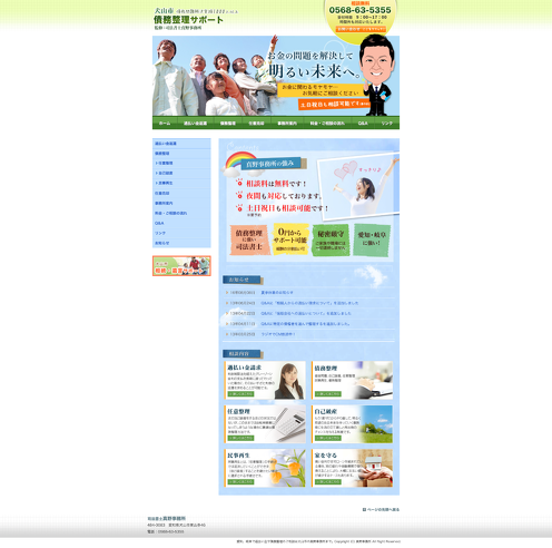 債務整理サポート http://www.manojimusyo.com/ 制作 有限会社シーエスプラス 債務整理サポート様は犬山市の司法書士事務所である真野事務所様が運営されています。 全ページお客様の方で編集・追加ができるようになっています。 #その他