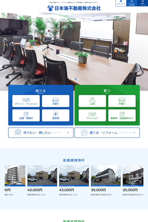 新潟市の日本海不動産株式会社様の公式ホームページを制作しました。日本海不動産様は新潟市内に複数店舗を構え、不動産管理・仲介をされています。制作サイトは不動産情報が見やすいように、白地にコーポレートカラーのブルーでまとめ、初めての方向けの「このサイトの使い方」ページを用意。トップページより「借りる」「買う」「売る」「貸す」「建てる」「リフォームする」という、目的別に必要な情報がすぐに見られるよう、ユーザビリティに配慮した構成になっています。「借りる」「買う」はそれぞれ子ブログにして、エントリーがそのまま一つの物件情報になるようにカスタマイズ。細かな検索条件に対応できるようにしました。また、管理者が物件情報をスピーディに確認・検索できるよう管理画面をカスタマイズ。エントリー一覧画面にカスタムフィールドの内容を表示させるようにしたこと、一覧はCSVでダウンロードできるようにしたことで、編集画面を開かずに物件情報を確認・検索できるようになりました。