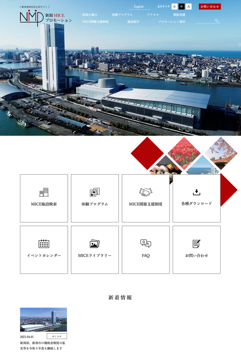 新潟県のコンベンション施設を紹介するホームページを作成しました。 各施設の詳細ページはカスタムフィールドで構成されているため、修正が容易に行えます。 検索ボックスで絞込検索もでき、ユーザーの使いやすさを意識したホームページとなっています。