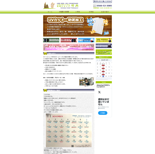 衣料ショップ竹内様WEBサイトをa-blog cmsで制作しました。 愛知県高浜市で開店して以来、近隣小中学校はじめ幼稚園・保育園に通うお子様の成長を先生方及び住民の皆様と共に見守りながら、園・学校生活を応援しているお店です。 お店に行くと店主が優しい笑顔と楽しい会話で迎えて下さります。