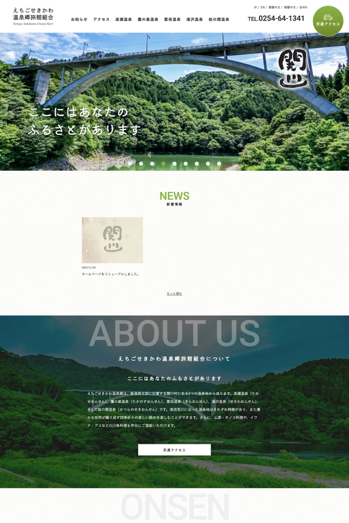 新潟県北部関川村の、えちごせきかわ温泉郷旅館組合様のホームページリニューアルをしました。