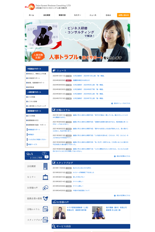 中国上海で日本企業向けのコンサルティングをしている大洋正銘ビジネスコンサルティング様では、これまでMovableTypeでホームページを構築されていましたが、a-blog cmsで全面リニューアルし、更新作業が簡単になりました。