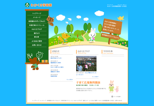 わかくさ保育園 http://www.wakakusa-hoikuen.com/ 代理店名 キャスト 以前a-blogで構築されていたサイトを、a-blog cmsにてリニューアルいたしました。以前よりも柔軟なサイトになったのはもちろん、a-blog で入力したデータを編ますところなく移行することができ、サイトのボリュームを落とす事なくリニューアルを行う事ができました。 #教育・学校